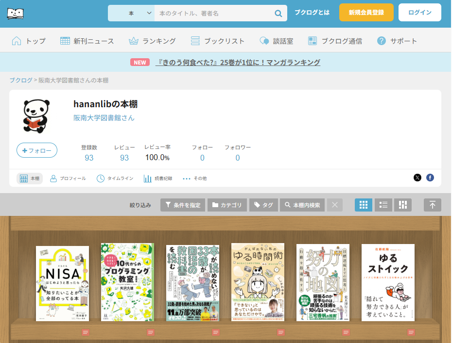 ◆電子本棚「ブクログ」で阪南大学図書館の館内展示本の紹介を開始しました!